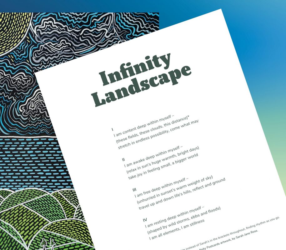 Inspired by Sarah Jane Ross’ Infinity Landscape paintings (to view the Infinity Landscape cards head to Activity Tools), Sarah Acton wrote this poem which can be modified with your own words.