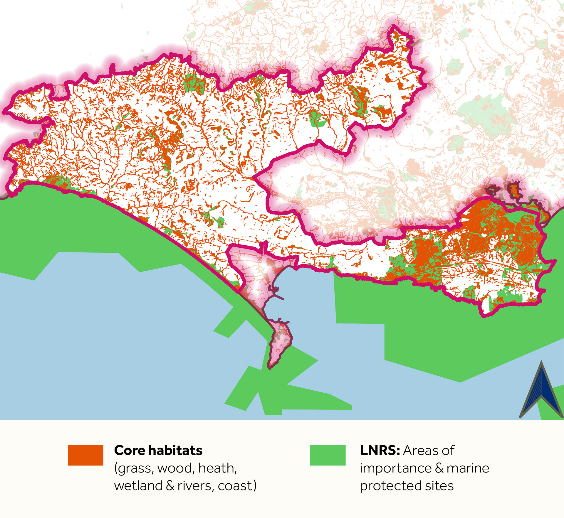 Biodiversity is a fundamental element of natural beauty. The National Landscape’s wealth of wildlife, from the common and widespread to the globally rare, is one of the outstanding qualities that underpin its designation. The biodiversity of the National Landscape is shaped by the underlying geology and its influence on soils and hydrology. It is also influenced by the social, cultural and economic activities of past and present land use, which biodiversity supports by providing resources such as food, timber, clean water and crop pollination amongst others. Biodiversity also provides us with opportunities for recreation, relaxation and inspiration and a range of associated tourism opportunities. Dorset is particularly rich in some habitats and species. For example, lowland heathland and the characteristic species associated with it form a recognisable landscape across southern England, but in Dorset there is a concentration of species such as sand lizards and smooth snakes that do not occur in such numbers anywhere else in the country. The same could be said of the coastal habitats of Poole Harbour and the Fleet within the boundary and the marine SACs on its southern boundary. Since 1945, the landscape has changed markedly in response to changes in economic, agricultural and forestry policies. For example, some of our most cherished wildlife areas have become degraded over time through habitat loss and fragmentation associated with agricultural intensification, conifer afforestation and increasing development pressures. Also, increased use of artificial fertilizers as a result of the drive for food self-sufficiency that followed the Second World War has led to nutrient enrichment of many watercourses, leading to additional impacts on wildlife, particularly in Poole Harbour and the Fleet. Current and future pressures and competing land uses will continue to have impacts, including agricultural policy, climate change, invasive species (new pests and diseases). A step-change in our approach to nature conservation is required to ensure that natural systems are repaired and rebuilt, creating a more resilient natural environment for the benefit of wildlife and ourselves. The Local Nature Recovery Strategy will guide this step change, in conjunction with local data on functioning ecological networks and habitat restoration opportunities.